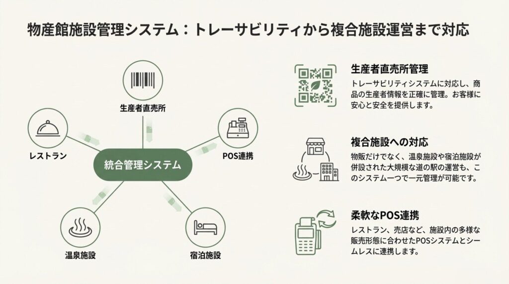 温泉施設、宿泊施設、各種施設管理への拡張が可能です。統合的なシステム構築ができます。